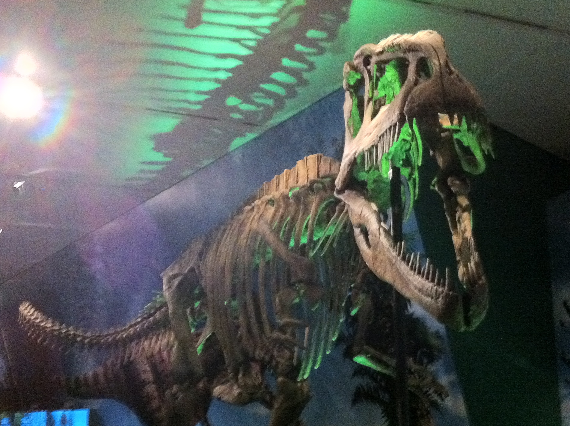 It was the technology that compelled me to write this little post, though. The giant video displays showing the past and future movements of our continental drift over the span of hundreds of millions of years were really cool. And I was surprised and enthralled by the video wall that made use the X-box Kinect. I’m personally fascinated by the applications of the Kinect. It’s amazing to me that something that started as a simple gaming preferel has become such a widely and creatively used device. Using the object and motion tracking abilities of the Kinect, the video contains various CG dinosaurs whose gase would follow you as you walked by. Certain movements even seemed to trigger various reactions on certain creatures (like opening it’s mouth and then snapping it shut).